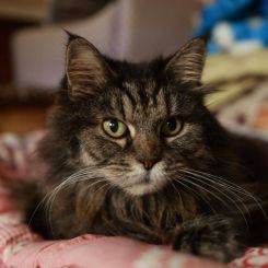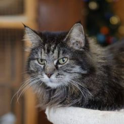 Мурочка уже немолода, но по-прежнему очень красива. Вакцинирована, стерилизована, без хронических кошачьих инфекций. Пожизненно принимает лекарство от астмы. Отлично воспитана.