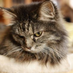 Мурочка - бывшедомашняя кошка, которой не повезло жить в маргинальной семье. Не особо заботились, забывали покормить. А однажды просто не пустили с прогулки домой. Надоела. В другой, новой семье Мура была счастлива два года. Распушилась, похорошела, приосанилась. Почувствовала себя в доме хозяйкой, с удовольствием приняла на себя обязанности нянечки и заботливо растила человечьего малыша. Увы, и этот период жизни закончился печально. Уезжала в новый дом Мурочка неприлично здоровой, а вернули ее с запущенной бронхиальной астмой, измученную страшными и безостановочными приступами кашля. Тем надоела, этим оказалась ненужна нездоровой. Сейчас самочувствие у кошечки хорошее, подобрана поддерживающая терапия.