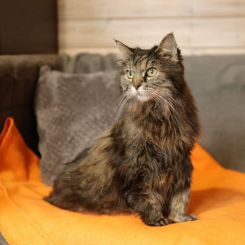 Среди соплеменников Мурёна всегда занимает позицию императрицы и должность гендиректора. К кошкам и собакам строга, но справедлива. Мохнатый дипломат.