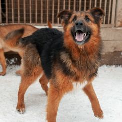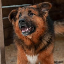 Джастин – самый веселый, активный и позитивный щенок из семейства, которое в январе 2025 года было найдено в заброшенном сарае в районе деревни Гребнево (Щелковский район). В семействе было 9 щенков. Одной девочке удалось сразу найти хозяев, одного щенка взяла себе хозяйка мамаши этого семейства, одного щенка пристроили недавно. Джастин вместе с шестью своими братьями и сестрами живет на передержке в Киржаче, живут в вольерах с выгульниками. Мы опекаем эту компанию с момента, как они были найдены (в возрасте около 1.5 месяцев), мы их доставили на передержку и регулярно посещаем. Джастин, как и вся семья, регулярно обрабатывается, проходит плановую вакцинацию, кастрирован. Джастин очень ориентирован на общение с человеком, радуется и бегает кругами, когда мы навещаем щенков, готов обниматься и облизывать столько, сколько мы готовы вытерпеть эти собачьи нежности. Очень умный, быстро понимает, что от него требуется, когда мы с ним занимаемся, всегда готов общаться и заниматься. Отлично уживается с другими собаками, никого не обижает, скорее, его может обидеть более доминантный пес. С детьми школьного возраста общается так же позитивно, как и со всеми остальными, опыта общения с маленькими детьми нет. На кошек, проходящих мимо вольера, реагирует спокойно.