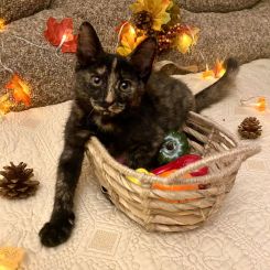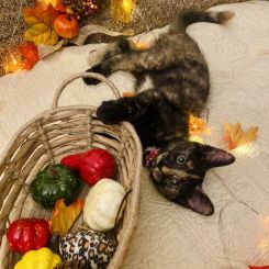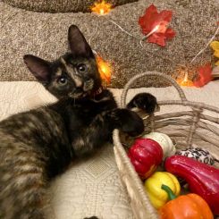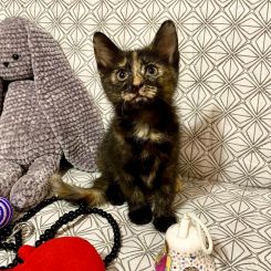 Котейка уникального окраса, называется черепаховый. Природа одарила Сахару не только необычным окрасом, но и бойким характером.