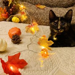 Малышка очень активная, любит много играть, в столь малом возрасте охотится за всеми своими игрушками как большая кошка, любит быть рядом с человеком, на руках с радостью посидит, обожает причесываться, умеет громко мурлыкать))