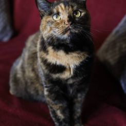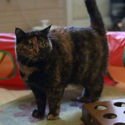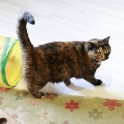 Афина - молодая кошечка. Энергичная и игривая. Любит погонять мячики и половить плюшевых мышек.