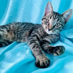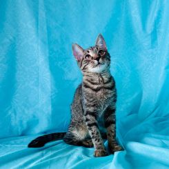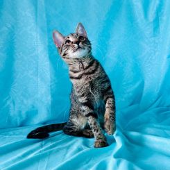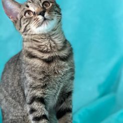 Лиза позитивный суперласковый котенок. Она любит играть с игрушками : мячиками, мышками и со своими сородичами, с собаками дружит, но особенно привязана к человеку. Любит сидеть на руках, спать рядышком и мурчать.