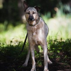Послушен, хорошо ходит на поводке. Живёт в Подмосковье, с условиями жизни в городе не знаком.